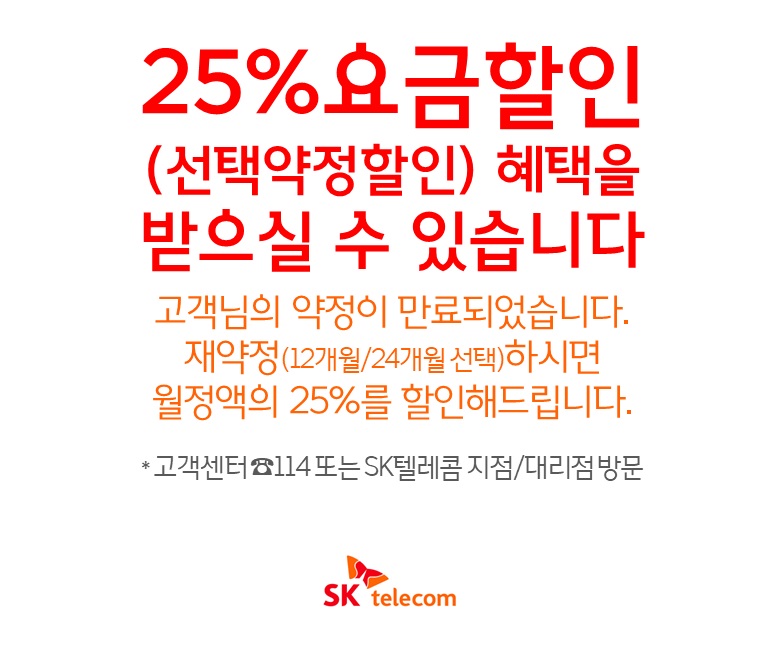 -재가입해야 이용 중인 요금제의 월정액에서 25% 할인받을 수 있다