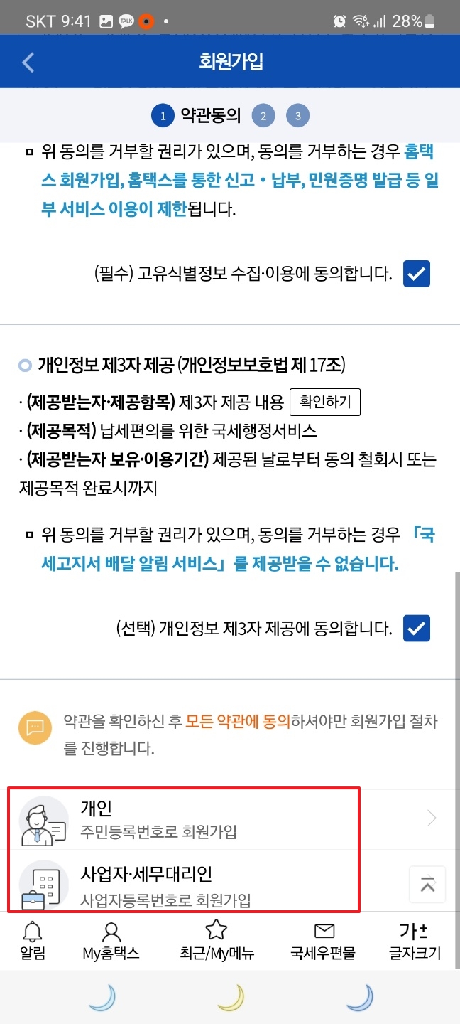3.개인은 개인을 클릭하고 사업자는 사업자·세무대리인을 클릭합니다