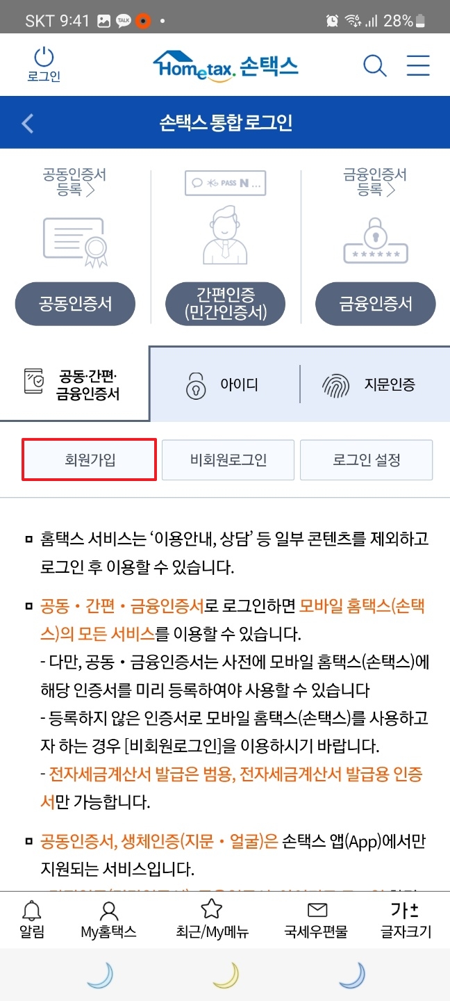 손택스 가입방법에 대하여 알아보겠습니다.