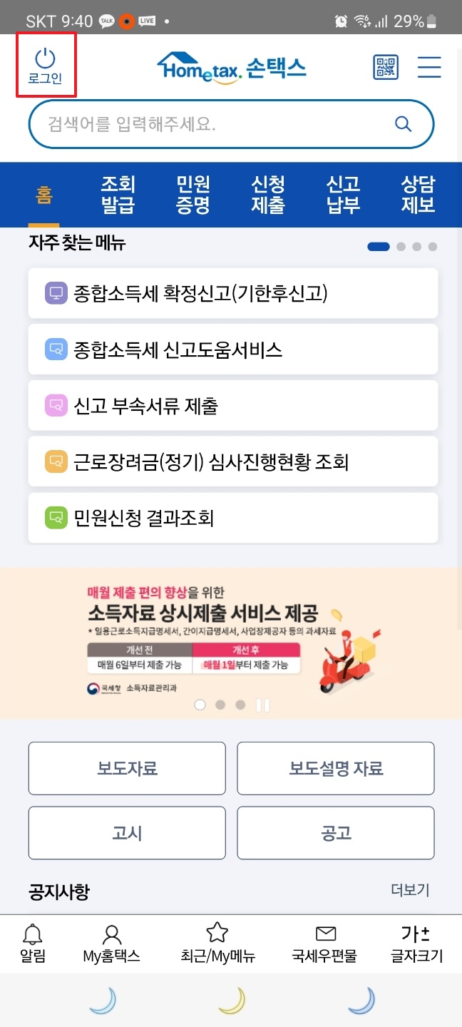 먼저 손택스 어플을 열고