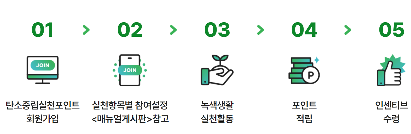 그리고 실전항목별 참여설정 매뉴얼게시판을 참고하여 녹색생활을 실천하고 포인트 적립 및 인센티브 수령하시면 됩니다