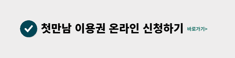 첫만남이용권이란 정부가 출생 아동 1명당 200만원의 첫만남 이용권을 지급하는 제도입니다. 아이 출산하시느라 너무 고생 많이하셨습니다!! 출생 아동에게 주어지는 혜택첫만남 이용권 꼭 신청하셔서 200만원 지원 받으시기 바랍니다. 아래 이미지 클릭하시면 신청페이지로 바로 이동합니다.